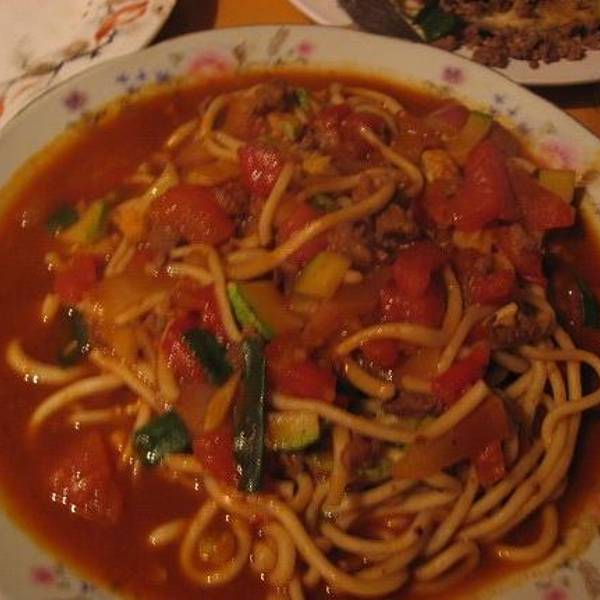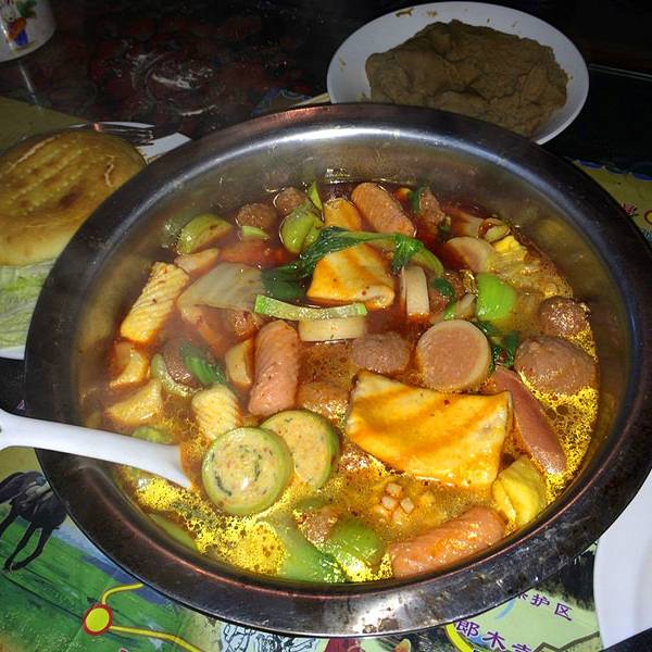 右下角那个是店里很出名的苹果派,其实有点象国内大多数小吃街卖的那种印度飞饼,然后下面的酸奶,很小一碗。炒面的味道还可以这个是我们点的藏式烩菜,里面就是很多吃火锅时放的那些材料。