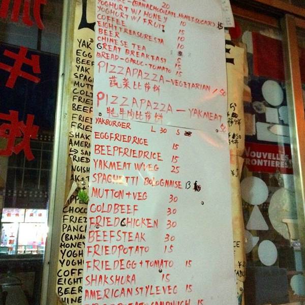 这家店算是很出名的,好多人就是冲着名声去的。这家厅堂的确特别驴友范儿,各种留言各国纸币,刚好有拍了一张。但是说句实在的,所谓的名点有些令人失望,苹果派 外皮脆里面馅儿热乎乎的,算是香甜可口,但没有那么特别和神奇。奶茶,奶味不会太重,可以接受。酸奶,相当的稠,味道浓郁又贵又不是特别好吃,好像一小碗要10块钱。我在藏民家吃的那是一大碗10块钱。还有一点儿呢,老板态度感觉冷冰冰,有些游客因为冲着名声想进去,一进门就听服务人员不太客气的说,进来是需要消费的,不是拍照的。怎么说也是游客把他们的店传出名的吧,不可以这样子滴……如果为了慕名而来就吃个氛围就来吧,要是想真吃到美食不太建议。
