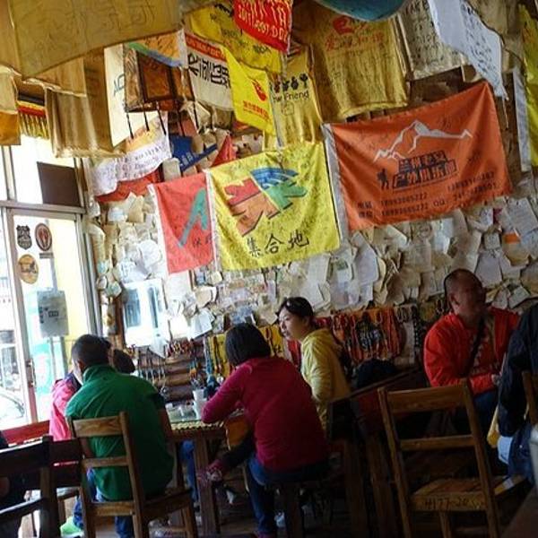 这家店算是很出名的,好多人就是冲着名声去的。这家厅堂的确特别驴友范儿,各种留言各国纸币,刚好有拍了一张。但是说句实在的,所谓的名点有些令人失望,苹果派 外皮脆里面馅儿热乎乎的,算是香甜可口,但没有那...这家店算是很出名的,好多人就是冲着名声去的。这家厅堂的确特别驴友范儿,各种留言各国纸币,刚好有拍了一张。但是说句实在的,所谓的名点有些令人失望,苹果派 外皮脆里面馅儿热乎乎的,算是香甜可口,但没有那么特别和神奇。奶茶,奶味不会太重,可以接受。酸奶,相当的稠,味道浓郁又贵又不是特别好吃,好像一小碗要10块钱。我在藏民家吃的那是一大碗10块钱。还有一点儿呢,老板态度感觉冷冰冰,有些游客因为冲着名声想进去,一进门就听服务人员不太客气的说,进来是需要消费的,不是拍照的。怎么说也是游客把他们的店传出名的吧,不可以这样子滴……如果为了慕名而来就吃个氛围就来吧,要是想真吃到美食不太建议。