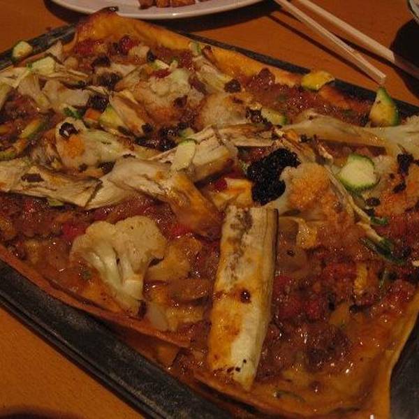 看到别桌老外都在吃PIZZA,我们也点了一个 过了好久才上桌 居然是长方形的!哈哈! 底很脆哦!!!意外的惊喜!!! PIZZA的酱料是甜甜的,上面好象都是蔬菜类的,具体是什么也看不清楚,很好吃!口感湿...