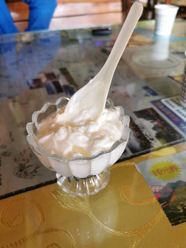 酸奶,相当的稠,味道浓郁又贵又不是特别好吃,好像一小碗要10块钱。我在藏民家吃的那是一大碗10块钱