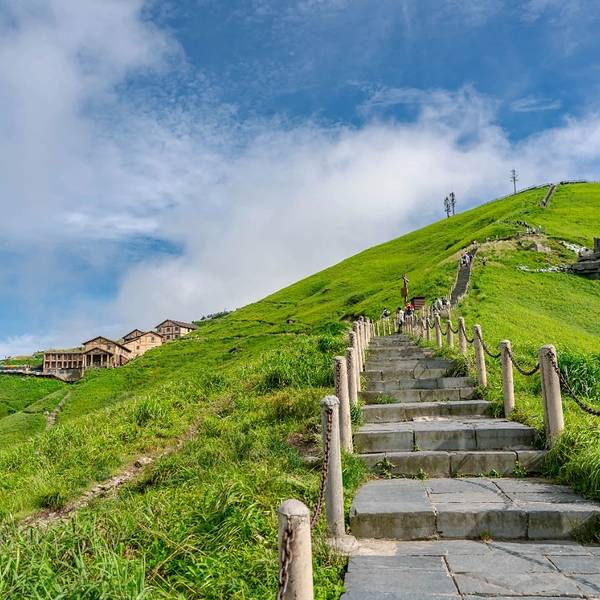 交通指南 外部交通 高铁:坐到萍乡北站,出站后乘坐大巴直达山脚,车程约1小时,票价27元。 火车:到达萍乡站,出口马路对面有直达武功山的汽车,发车时间6:40-17:20,票价22元,车程约70分钟。 自驾:导航“武功山地质博物馆”,停车费白天10元/天,过夜20元/天。 内部交通:景区提供免费大巴可送至石鼓寺登山口,平日运行时间8:00-21:00,周五周六运行时间8:00-24:00。 自驾:直接导航到武功山游客服务中心,然后坐免费大巴(大概十分钟)到武功山大门 高铁:下站后坐直达武功山的旅游大巴,或者拼车 先看全程攻略: 门票:学生50,成人70 时间:大概五个小时。全程路线在途中每隔一段均有标注,简洁明了,大家不用担心走错路。 注意事项:途中可能有猴群出没,尽量避让,不要逗留。 到达好汉坡时,尽量休息十分钟,好汉坡十分陡峭,有一定挑战性。 携带一些干粮,比如牛肉干,饼干之类,饮料可以选择矿泉水或者功能饮料,及时补充能量 锁桥路段比较高,恐高者可以走旁边通道,路程稍微远十分钟 半程攻略: 门票:学生50,成人70 缆车票(两段):中庵索道上行65,下行50 金顶索道上行35,下行25 时间:坐两段缆车,大概只要爬一个小时 注意事项: 分叉路口注意看指示牌,坐缆车与爬全程分路线 坐缆车节假日与双休一般需要排队 总结: 无论全程还是半程,一定要注意保暖和体力,山顶温度比较低,秋冬季带好羽绒服,到达金顶可排队打卡留念。 行程规划 新手友好线(1天版):萍乡武功山游客中心→中庵索道→紫极宫→许愿桥→金顶索道→金顶。坐缆车直达半山腰,再慢悠悠爬2小时就能登顶,沿途有补给站可以买烤肠和冰可乐,登顶后可拍“云端漫步”大片。 进阶挑战线(2天版):萍乡武功山游客中心→中庵索道→紫极宫→许愿桥→好汉坡→吊马桩→金顶。万亩草甸像绿色波浪,好汉坡台阶望不到头,登顶后可看日出,橘色霞光泼在草甸上,美到窒息。 硬核突破线(2天版):萍乡武功山云顶景区入口→金壶洒酒瀑布→观音宕→星空玻璃栈道→吊马桩→金顶。全程只能徒步无索道,需要超强体力,但能一次打卡武功山的瀑布、草甸、日出云海、星空银河多个景色。 拍照攻略 日出:夏季日出时间约5:30,站在金顶,看太阳从云海中升起,金色光芒洒满草原,宛如仙境。 日落:大约在19:00左右,橘色的光芒照耀起伏的山脉,有种旷世美感。 绿色草甸:春夏季节草甸翠绿茂盛,穿浅色系衣服拍照出片率更高。 云海:雨后初晴出现云海的概率较大,站在高处,云海翻涌,仿佛踏入仙境。 星空:连续的晴天极有可能出现星空,带上三脚架,选择视野开阔的地方,减少光污染干扰就可以拍摄到超梦幻的银河星系。