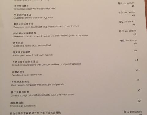 这种地方吃的就是位置和环境,灯光略暗,食物无论是炒菜还是点心都色泽味道都很棒。菜谱先来一波,供食客们参考一下。包间有包间费的,晚上更贵些,好像是6000。那价格真是土豪的吓人。来这种地方的包间吃饭,不...