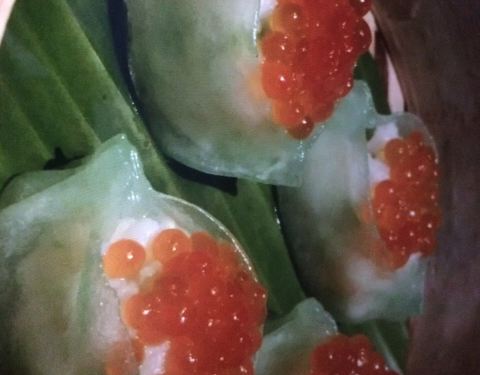 - ...是必定少的…… 水晶蒸饺里面除了虾仁还有很明显的肉糜和菜,搭配的也是不错,有个芒果的甜品很好吃