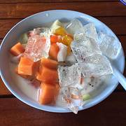 门口停车一小时四元,店里有缅甸小店员,听他们的普通话好不费劲。店门口放了好些个水果还有黄瓜,牛油果硕大无比。点了据说很具特色的花阳冷饮-泡鲁达,感觉一般,咖啡也是冲泡的。所以来此首当其冲就该是果汁。