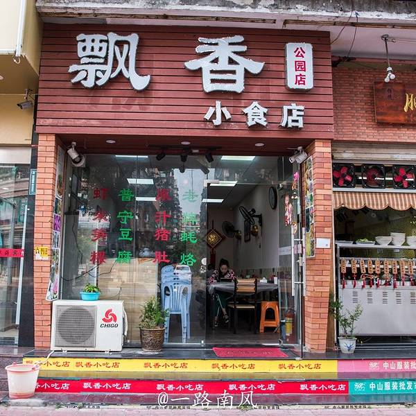 飘香小食店就在中山公园大门口,在汕头当地颇有名气,交通也很方便。公交车站是公园头,经过的公交车很多小食店门面不大,不过颇为整洁。由于我到达的时间为下午两点多,就餐的人不多。