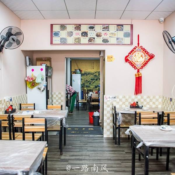 小食店的墙上悬挂着数幅老...飘香小食店就在中山公园大门口,在汕头当地颇有名气,交通也很方便。公交车站是公园头,经过的公交车很多小食店门面不大,不过颇为整洁。由于我到达的时间为下午两点多,就餐的人不多。