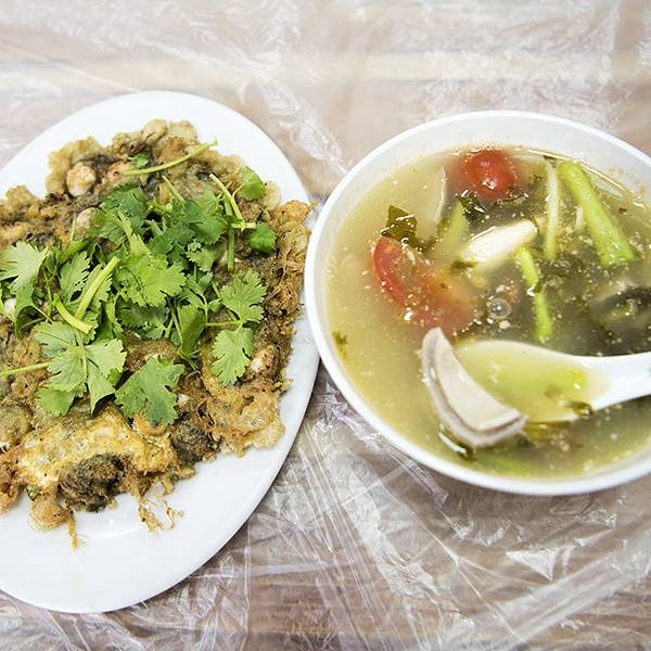 - 由于只有一个人用餐,因此只点了两大招牌-蚝烙和猪肚汤,猪肚汤加了酸菜和番茄,味道尚可,蚝烙过于...