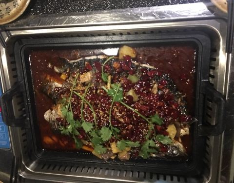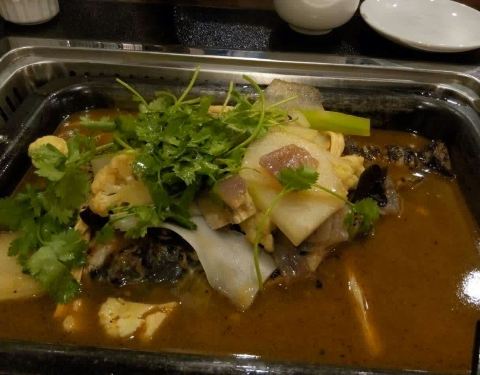 好久没来吃了,这次两人点了一条最小的回头鱼,三斤。有点咸,后来加了水之后好点,总体来说口味还是很好的,鱼肉也很嫩,很鲜