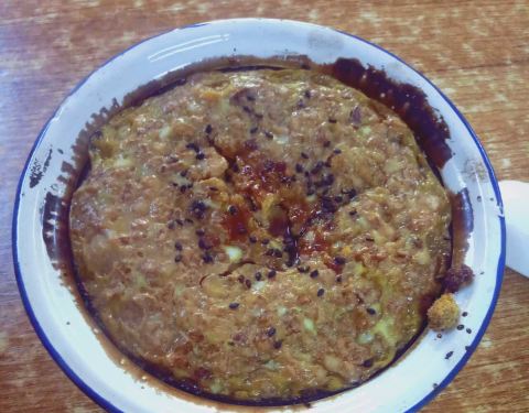 台州第二天完全是小吃之旅,这是其中之一的老店。 食饼筒 难道不是换了饼皮的煎饼果子嚒。豇豆、熏肉、米粉、土豆丝、胡萝卜丝、咸菜丝等等包裹在饼里。可以一切二,两个人分享。斯以为,这个叫做大饼卷一切也没错呀。 姜汁核桃炖蛋 味道有点神奇,第一次吃到甜口味的炖蛋。姜汁味很明显。如果冬天吃上一碗,一定嗲的不得了。 扁食 这里有蒸扁食和汤扁食两种。忽然就想到一句话,饺子就酒 越吃越有。
