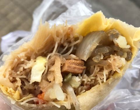 台州第二天完全是小吃之旅,这是其中之一的老店。 食饼筒 难道不是换了饼皮的煎饼果子嚒。豇豆、熏肉、米粉、土豆丝、胡萝卜丝、咸菜丝等等包裹在饼里。可以一切二,两个人分享。斯以为,这个叫做大饼卷一切也没...