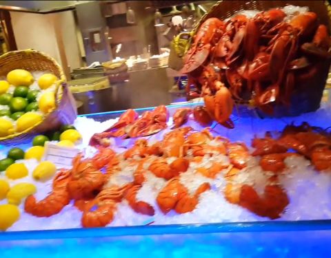 四季酒店的自助餐,自然不一样,光是龙虾就有几种做法的,蒜蓉龙虾不错,龙虾刺身也可以,海鲜品种很多,直接吃海鲜扶墙而出了。