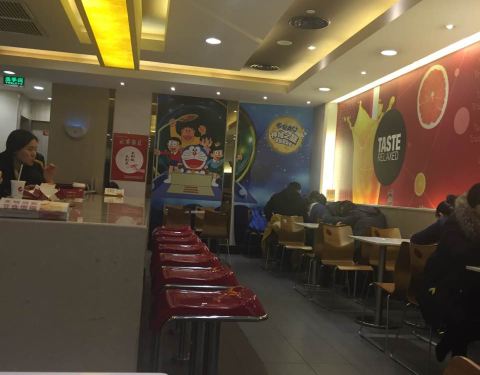店在地下,没有空调,感觉热,汉堡油很大,一吃就腻,问起甜筒满大街都有的优惠这里也没有,感觉自己是来了假的肯德基店,不好不好,再也不来了