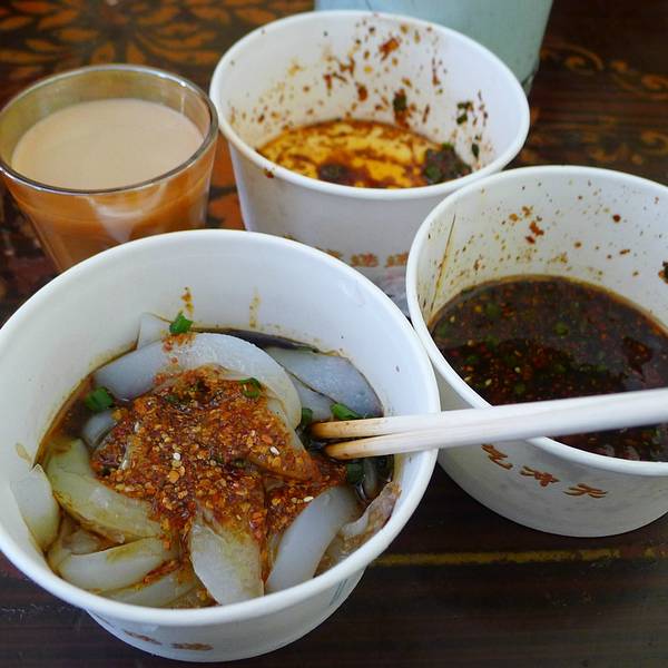 仓姑寺茶馆(是一家寺庙,但同时卖甜茶和小吃,大部分都是当地人吃早餐喝下午茶的地方)离青旅很近,步行5分钟左右到达。进门左拐处点餐,领取餐牌,再根据指示领取所买的食物,就可以拿到二楼用餐了。