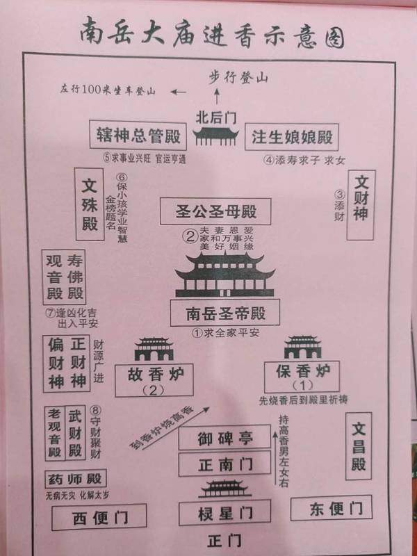 石鼓书院主要建筑有武侯祠、李忠节公祠、大观楼、七贤祠、敬业堂、合江亭。——摘自百度书院是免费参观,凭身份证登记就可以。立于院内的“石鼓”。登上合江亭绵绵湘江尽收眼底。书院临江而建,景色宜人。湘江里有很多游泳爱好者野游。书院外的健身广场。下午约车前往南岳。4个人车费85元,坐火车还要来回倒车,费用差不多,但是时间上约车会节约点。不用走高速,低速车也不多,大概车程1小时(高速省20分钟左右)。南岳可是南方香火最旺的地方,没到景点就能看到路两边都是香烛点,巧的是我们的司机师傅在山下就有店,更巧的是我们被他“收编”了,哈哈哈(主要还是老板人不错)!南岳香火旺,求财,求子,求姻缘,感兴趣可以来试试。老板的讲解比较全,会告诉你怎么上香,求拜。这是南岳大庙里的布局图。进入大门,一组造型奇特的纪念碑,形如五颗直指青天的炮弹,进入众人视线,中间一颗较高,另外四颗环绕四侧,象征着汉、满、蒙、回、藏五民族,碑基上有醒目的“七七”大字。 展开