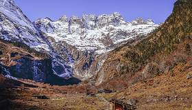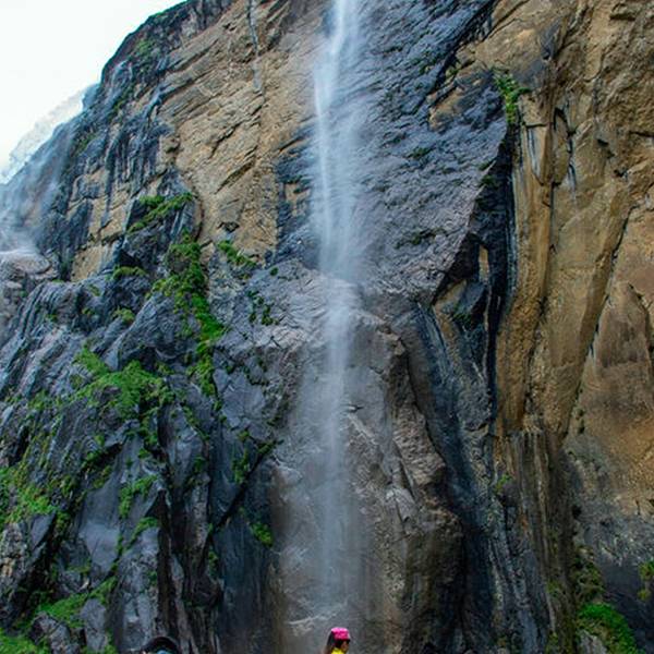 位于云南德钦县云岭乡境内的卡瓦博格峰南侧,有悬岩倾泻而下的瀑布,被称为“雨崩神瀑”,藏族人以到雨崩神瀑下沐浴作为一种洁净心灵的修炼。“雨崩”,意为经书。