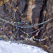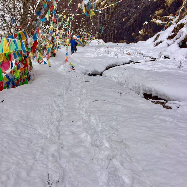 神瀑是梅里第一圣地,藏民每年在四面八方来到这里,神瀑是必须要来的,每年都要最少来一次,到这里的...一路上有很多的经幡,比起昨天的路要好的很多很多,昨天的还能叫做路吗?我和万万都有意的加快了步伐!景色还是要欣赏的,玛尼堆随处可见。就是在中间阴影的这块大石在这块大石上沾满了钱币,我也在上面粘了一个1...一路上有很多的经幡,比起昨天的路要好的很多很多,昨天的还能叫做路吗?我和万万都有意的加快了步伐!景色还是要欣赏的,玛尼堆随处可见。就是在中间阴影的这块大石在这块大石上沾满了钱币,我也在上面粘了一个1元硬币越往上走经幡越多,海拔也在升高,雪也越来越多用时2个半小时到达神瀑,离神瀑很远就听到雪崩的声音。看到神瀑有些失望我们在这里四天了天天好天气,神瀑的水太少了,不像我之前看到的图片很壮观。