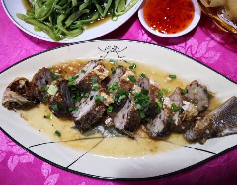 - 特色菜鱼肚羹一般,没有什么味道,炸牛奶不过不失,功夫鲩鱼很滑,太有点小,总体没有什么惊奇,感觉很一般