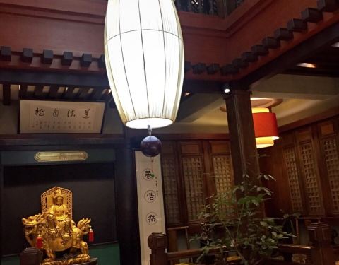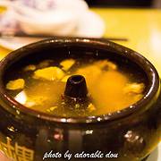 因为是一个人来吃,又都满了,就被安排在一个喝茶桌上吃饭,坐的很不舒服。鸡汤味道不错,但是汤里血水太多,很明显是没有焯过热水的,鸡汤上的很快,比素菜还快,真心不知道是不是用汽锅煮的,至于这点持怀疑态度,味道和环境确实不错