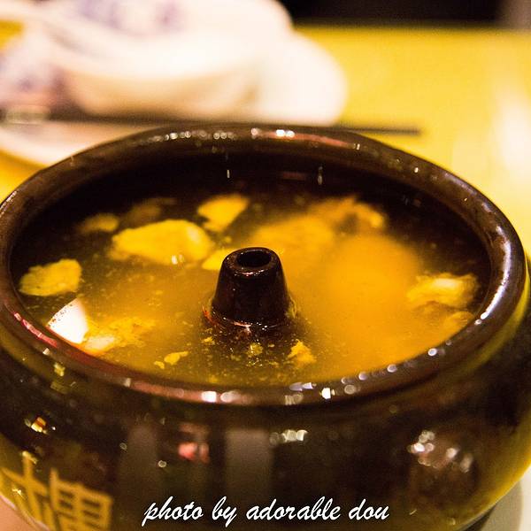 因为是一个人来吃,又都满了,就被安排在一个喝茶桌上吃饭,坐的很不舒服。鸡汤味道不错,但是汤里血水太多,很明显是没有焯过热水的,鸡汤上的很快,比素菜还快,真心不知道是不是用汽锅煮的,至于这点持怀疑态...