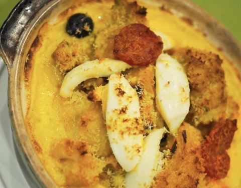 加路餐厅,开业至今约30年,曾在2013年获得米其林推荐,是吃过就难忘的经典土生葡国菜。「烧乳猪饭」是这里的特色美食之一,乳猪皮脆肉嫩,入口咯咯脆响,肉质软嫩,口感融合,是一道不得不品尝的美食。「薯丝炒马介休」,是一道充满家常风味的料理,将马铃薯切成丝状酥炸,加入马介休、蛋丝等食材拌炒,最后撒上香菜,口感匀称,香鲜爽脆,十分下饭。如果吃完正餐觉得还差点什么,可以试一下这里的木糠布丁,吃起来冰冰凉凉的,口感类似霜冰淇淋,很好吃。