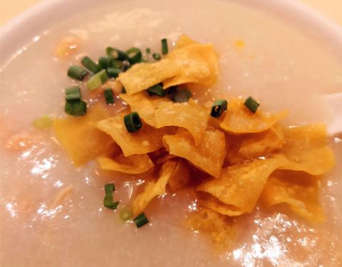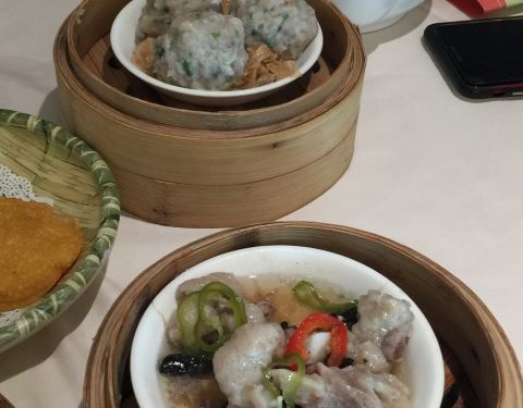 本想去渔人码头玩的,一场突如其来的大暴雨打乱了计划,只能就近找一家餐厅避避雨。 这家名为金龙轩的茶餐厅映入了我的眼帘,餐厅在一家酒店娱乐场楼上,老城区的酒店不豪华,很接地气,酒店里来来往往的都是些国内游客。餐厅里也是中老年人居多,不过茶餐厅供应的美食还是不失水准的。价格也不比内陆茶餐厅贵,再用澳门币汇率一折算更是觉得合算。在家时去茶餐厅都是几个人一起去,一点一桌,可以多品尝几种美食,这次自己一个人去吃还真有点无从下手,点了蒸点、甜点、煎炸的还有一份粥,量还真有些大了。难怪人家去茶餐厅都说要一盅两件,以前还不明白,现在发现确实一个人吃一盅两件也够了。