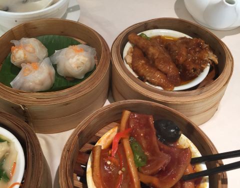 本想去渔人码头玩的,一场突如其来的大暴雨打乱了计划,只能就近找一家餐厅避避雨。 这家名为金龙轩的茶餐厅映入了我的眼帘,餐厅在一家酒店娱乐场楼上,老城区的酒店不豪华,很接地气,酒店里来来往往的都是些国内游客。餐厅里也是中老年人居多,不过茶餐厅供应的美食还是不失水准的。价格也不比内陆茶餐厅贵,再用澳门币汇率一折算更是觉得合算。 在家时去茶餐厅都是几个人一起去,一点一桌,可以多品尝几种美食,这次自己一个人去吃还真有点无从下手,点了蒸点、甜点、煎炸的还有一份粥,量还真有些大了。难怪人家去茶餐厅都说要一盅两件,以前还不明白,现在发现确实一个人吃一盅两件也够了。