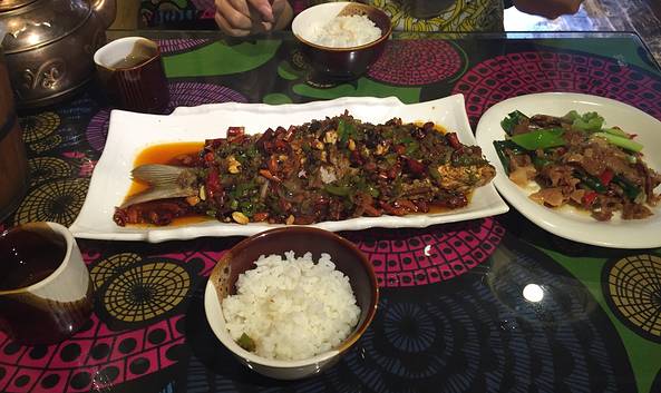 环境有点脏,有点乱。不过价格比较实惠,他家的烤鱼味道非常好吃,值得推荐,其它菜比较一般,不过好在价格实惠,冲着他家烤鱼,推荐品尝。