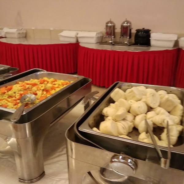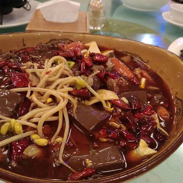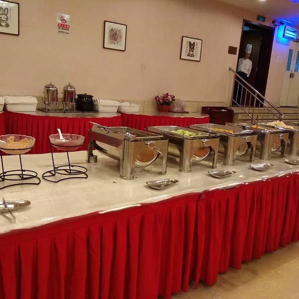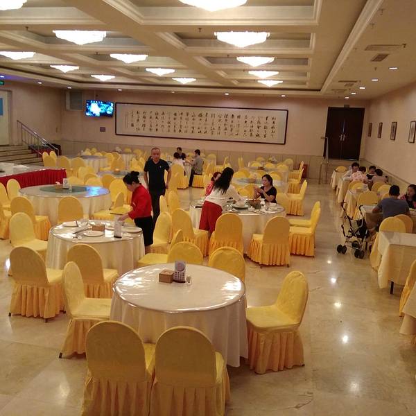 6月初,有朋自远方来,不亦乐乎!亲友回国,北京转机,酒店匆忙相见,顺便在此吃了个便餐。酒店的外观一般,不过里面的装修还不错,前台大厅,挑高二层,汉白玉的栏杆,宽敞、大气,并设置有休息区,感觉比较周到,还是蛮不错的。酒店餐厅宽敞、明亮,装修比较简单,大理石地面,座椅呈明黄色,感觉有点富丽堂皇。来此就餐的人不是很多,基本都是北京转机在此住店的。餐厅干净整洁,服务员态度还不错。自助餐40元一位10几个菜品,荤素搭配,还有汤粥等,看起来很一般。于是,我们决定自己点菜。因人少,上菜还是比较快。毛血旺,吃辣菜的朋友都比较喜欢,这也是我们常点的菜,每回都吃得酣畅淋漓。这里的毛血旺,偏重庆口味,花椒放的有点多,有点咸,不过料还是比较足的,大大的一碗,香辣可口,吃起来很过瘾。干锅茶树菇,配菜多茶树菇少,没有几筷子,茶树菇就见底了,茶树菇的口味还行,但整道菜的口味一般,不推荐。茄子烧豆角,这道素菜口味不错,口感绵软微甜,吃起来略有回味,老少皆宜,值得推荐。这里的菜总体感觉味道一般,菜品一般,菜量中等,菜价中等,也就是家常菜,感觉没有很大的特色。酒店的位置有点偏,离飞机场不是很远,公共交通不是很方便,适合自驾。不过酒店贴心,有每小时一班去往机场的班车,可以乘坐。