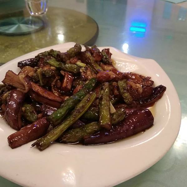 茄子烧豆角,这道素菜口味不错,口感绵软微甜,吃起来略有回味,老少皆宜,值得推荐