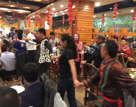 这里生意很好,酸汤鱼味道很好,还能一边吃饭一边看表演,还有互动的节目,象过节一样气氛很好