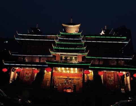 肥美的鱼肉经过酸汤的浸煮,变得更加鲜嫩多汁,这个时候还要蘸上特制的辣椒水,酸爽的鱼肉掺着辣椒的糊香,简直将“鲜”发挥到了极致 为了让大家都吃到这一口祖传酸汤鱼,吴笃琴在1986年的时候就创建了最早...肥美的鱼肉经过酸汤的浸煮,变得更加鲜嫩多汁,这个时候还要蘸上特制的辣椒水,酸爽的鱼肉掺着辣椒的糊香,简直将“鲜”发挥到了极致 为了让大家都吃到这一口祖传酸汤鱼,吴笃琴在1986年的时候就创建了最早的亮欢寨,当时以“快活林”为名,到现在已经是三十几年的历史 经过三十多年的沉淀,亮欢寨的酸汤鱼早已被列入省级非物质文化遗产代表作名录 如今的亮欢寨凯里总店 如今的亮欢寨不单单是凯里酸汤的弘扬地,更是一处集苗侗文化体验为一体的独具民族特色的传统餐饮店 苗家吊脚楼 亮欢寨是贵州第一家用苗家元素来搭建的店,古朴精致的吊脚楼让人仿佛置身于苗寨,墙上精致的壁画刻画着苗侗人家的生活常态,一进店里,就被浓浓的苗侗文化包裹 苗家水车 在苗家用来灌溉庄稼的水车在店门口不停地转动,总感觉水车转的不仅仅是水,更是上千年的苗家农耕文化 苗家服饰 连店里的工作人员都是穿着苗家服饰,或精美华丽,或简单朴素。天然朴实的苗家小姐姐,总是给你一种很亲切的感觉 高山流水 亮欢寨也是第一家将凯里苗侗风俗,搬到贵阳来的餐饮店。高山流水,是苗家向贵宾敬酒的最高礼遇。苗族姑娘的热情好客,全都表现在这碗流不尽的米酒中了 宴席上,几个穿着苗族服装的美丽苗家小姐姐,端来米酒,围在远道而来的客人身边,唱着敬酒歌,还没等你反应过来,就已经被“包围”,开始上演“高山流水” 碗一个叠着一个,一个高过一个,形成斜梯。“高山流水”之前你觉得你的酒量是王者,“高山流水”后,你会觉得你是块废铁 苗家歌舞表演 苗家人的宴席上,除了山歌米酒,自然也少不了精彩的舞蹈表演 身着盛装的苗家小姐姐在绚丽的舞台上轻盈舞蹈,甜美的笑容、婀娜的舞姿,她们将苗家妹子的美丽亲切展现得淋漓尽致 苗家的汉子可以说是粗矿的,也可以说是细腻的。上能用树叶吹曲。下能到河里捞鱼。从话筒里飘来的一曲曲熟悉的山歌,都是用这片平平无奇的叶子吹奏出来 打糍粑 在苗家人眼中,用糍粑招待客人好过用鸡鸭牛羊招待,苗家人无论是逢年过节,还是修房嫁娶都少不了糍粑 作为汉族人,记得小时候只有过年的时候才打糍粑。如今亮欢寨还把它搬来了店里,伴随着紧凑的击鼓声,在场的客人可以随意接力 打好的糍粑,供现场宾客分享,想要品尝