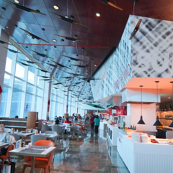 餐厅景观座位真的很不错,边吃边看金鸡湖。自助餐厅的东西也很多,一进去就是甜点去,蛋糕,冰淇淋,水果,饮料。再进去是铁板烧烤区,龙虾,烤肉,扇贝,然后会有海鲜区,还有面点区,品种很多。特别还为小朋友...