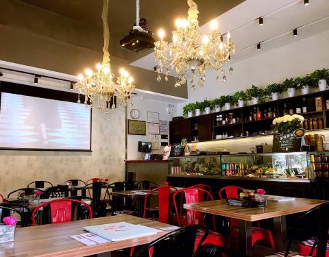 - 一个人包场,这环境吃饭,舒服,一年不喝三次奶茶的我,今天要破第一次了吗,哦拉