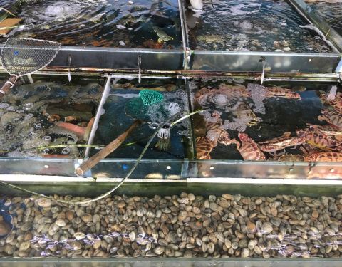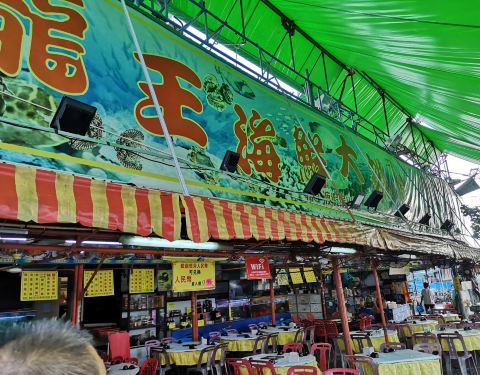 这家海鲜餐厅是下了船之后看见的第一家海鲜餐厅,所以,地理位置还算是不错了,他们家做了很多种套餐,都是统一的一口价格,所以这样子的话,就比较能吸引客人过来挑选,下午的四点多的时候还没有开,要到五点半,这边的饭才会开,在这里有比较大的海鲜池,果然是作为海鲜王的名字而存在。