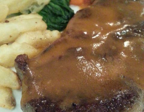 - 在这一家还是传统的点心小吃就好了,点的一份牛排,上面配的薯条软软的,然后牛排酱汁又太多,吃上就...