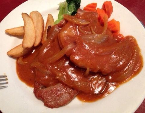 暑假和闺蜜一起去的,一家老式西餐厅,环境很好,整个餐厅散发着一种复古气息,充满时代感。 菜单上列了很多,有西式大餐,也有香港老式餐点。我们最后点的是香港本地的美食。我点的焗猪排饭,朋友点的是芝士焗鱼饭。都是很普通的摆碟,但味道真心不错,猪扒很入味,和米饭混合吃,一点也不会觉得腻。朋友的与做的很好,用蛋液包裹后再炸的。金黄金黄的,鱼肉很新鲜,闺蜜说很美味。 价格有一点小贵,但是这种味蕾的享受还是很值得的!!
