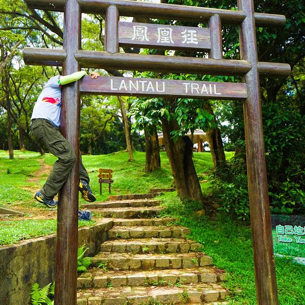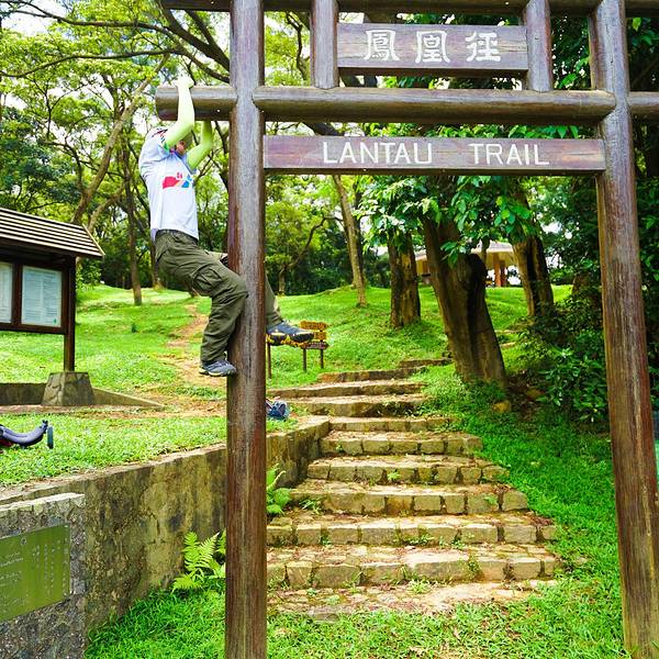 凤凰径的起点是在梅窝,它的第一段大概就是从梅窝码头到南大屿山郊野公园,基本上都是沿着公路在一路上坡,也就是从东涌前往梅窝的公交路径。这一段的难度并不大,在上坡的过程中,可以远远的看到大海。但是需要注意的是,来到南大屿山郊野公园入口的那一大片草坪,景色虽然很漂亮,但是蚊子是非常非常的厉害!我穿着长袖长裤,唯一的失算就是没有带上防蚊水,毫不夸张的说,隔着衣服被蚊子叮了有十几二十个包,真是被叮的跳,还好这些都是健康的蚊子,至少没有让我得上登革热。