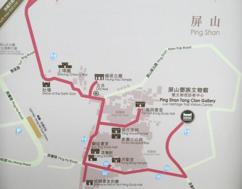 屏山文物径主要体现的是新界邓氏的宗族生活港铁天水围E3出口,正对着的小径就是屏山文物径的起点,第一个看到的是聚星楼。屏山文物径是香港的首条文物径,在村落民居中穿行,能看到一座座的古建筑,包括了邓氏宗祠、愈乔二公祠、仁敦冈书室、觐廷书室、上...港铁天水围E3出口,正对着的小径就是屏山文物径的起点,第一个看到的是聚星楼。屏山文物径是香港的首条文物径,在村落民居中穿行,能看到一座座的古建筑,包括了邓氏宗祠、愈乔二公祠、仁敦冈书室、觐廷书室、上璋围,还有一座殖民地建筑改建的邓族文物馆。屏山文物径主要体现的是新界邓氏的宗族生活。 展开