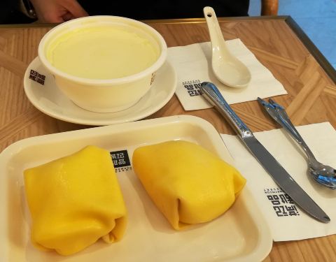 逛着逛着,累了,抬头一看“满记”招牌在前。顿喜…进内,暖意融融。店铺狭长,轻声细语中,低雅乐声环绕,服务小哥温柔附身询问需求…双皮奶顺滑,杨枝甘露酸甜,榴莲班戟香浓…好一个午间休憩之地!