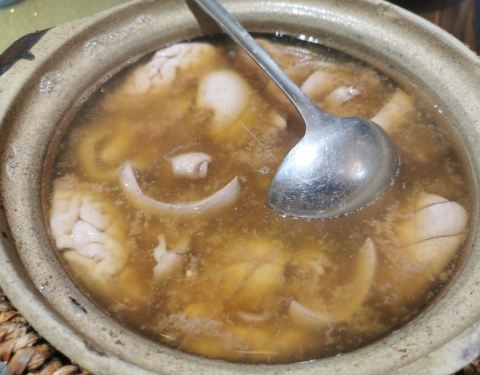 味道美味依然没变,还是那么美味的猪腰汤,风格没变,延续着古色古香的装修风格。只是更加宽敞和明亮,通透的落地玻璃,更好的服务,浓浓的岭南味,一进门就感到很舒适。个人觉得必点菜品是祖传姜酒浸猪腰汤:坚持用祖辈传下来的经典秘方,将“猪腰、猪脑、鸡子”结合了十多种药材用文火熬制,成就一锅远近闻名、营养丰富、可口浓郁的“猪腰汤”!选用姜酒来浸猪腰,不仅可以有效地去除腥味,还有驱湿祛寒之功效。猪腰有肝一般的嚼劲,鸡子在口中“砰”的爆开,口感软嫩,感觉满嘴的蛋白质和脂肪。