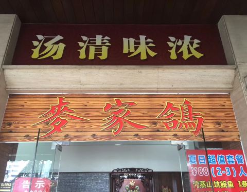 麦家鸽总店位于中山石岐东华路与康华路交叉口,环境幽雅,服务也不错,鸽子饭、红烧鸽、汤清味浓补而不燥之麦家鸽膳等等各种鸽子的做法都很好吃。
