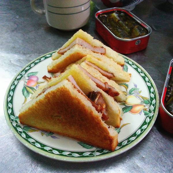...一丁的,爽爽的口感,三文治面包烤过,芝士熔化刚刚好,环境一般,有苍蝇飞来飞去的,比较市井的环境
