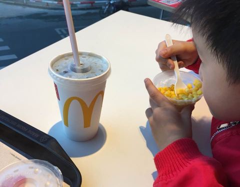 新品很好吃,小黄人啦啦啦啦。还点个新地,巧克力味道的,夏天的味道棒棒!