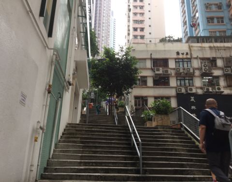 楼梯街位于香港上环,于香港开埠初期兴建,是一条上坡的以楼梯为主的街道,全长大约350米左右,原本全由花岗石铺成,历经百年已经大部分铺上了混凝土且更换了新型铁栏,不过沿途仍能看到如旧式护土墙、树墙及街道旁的护栏等历史痕迹。TVB电视剧和电影都曾在这一带取景,这些台阶非常眼熟。楼梯街自皇后大道中段起,沿山势而建,一路拾级而上,经摩罗上街、弓弦巷、荷李活道、四方街、必列者士街和裕林台,一直通到坚道。摩罗上街是一条以贩卖古董为主的古玩一条街。走到荷里活道,会看到文武庙就在路口,还有不少父母望子成龙,特地来此祭拜庙内的文帝,烧香祈祷。必列者士街的基督教青年会会所曾于1927年举办了鲁迅先生的一场演讲,二战时期也收容过大量的难民。在楼梯街上可以看到建筑的外墙上写着“青年会”三字。位于楼梯街高处的坚道与中环至半山自动扶梯相通,如果扶梯正好下行,可在此搭乘扶梯直通中环。平日10:00之后也可以尝试从中环搭乘扶梯上行至坚道,然后沿着坚道向西走,再从楼梯街向下,比较省力。