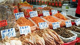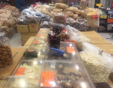 整条街都是买海味干货的店铺 不过赶上公共假期 大部分没有营业多坐了一站 无意间还来到了海味街