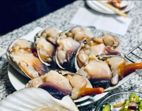 第一天来的时候周日晚上不知道为啥没开门,周二中午又早早的来了,还好没有失望,烤北极贝太好吃啦!内地都没见过这么大一个的北极贝,因为朋友吃的少,只点了两个北极贝两个马蹄贝,还有一个什么贝的刺身,脸那么大的扇贝就没点了。但是遗憾的是感觉甜的韩式酱料和贝刺身不是很配。老板很喜欢开玩笑哈哈。总之来延吉一定要吃的!