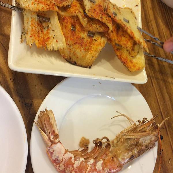 据说青岛当地人并不会在啤酒街吃饭喝酒,而去去台东利群小吃街,吃大排档,和扎啤。据说啤酒都是当天做当天喝,沫越多越新鲜。我们俩从啤酒街按照百度地图腿到小吃街,期间路过一家麻辣小龙虾,味道太毙了。 我们两个人在瑶瑶海鲜大排档点了一条鱼,一份扇贝,肉筋,板筋,羊肉串,大蒜,大虾,半扎啤酒,两个人吃刚刚好。一共花了96块钱,经济实惠,味道鲜美。