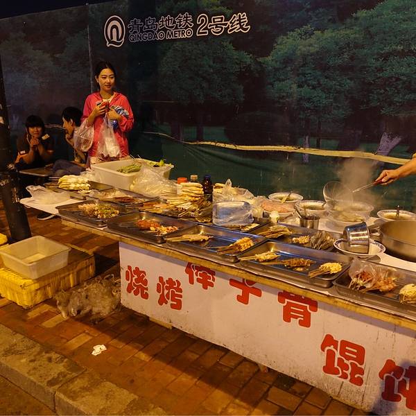 据说青岛当地人并不会在啤酒街吃饭喝酒,而去去台东利群小吃街,吃大排档,和扎啤。貌似9点关灯
