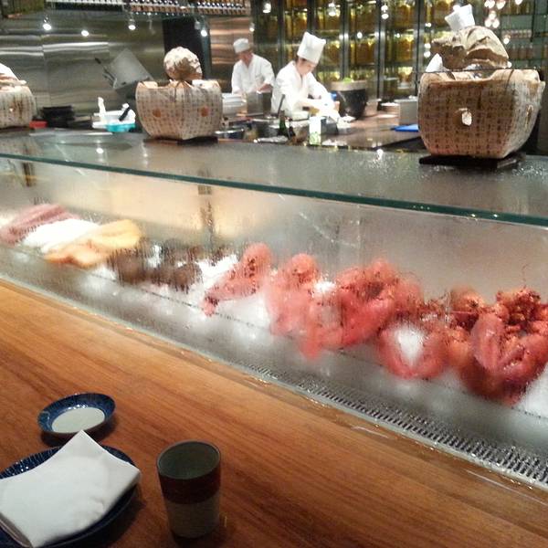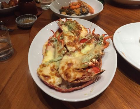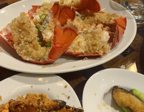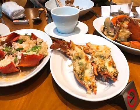 位置还真的是有点难约,餐厅很大,装修很豪华,服务有礼,都是很有经验的,开放式的厨房,厨师们都很忙碌,海鲜都是现做的,龙虾肉质很紧实,芝士很多,寿司可是随便吃到饱的,蒜蓉蒸鲍鱼比较原汁原味,食材很新鲜,就是龙虾的做法很多,还有鲜榨的果汁,人均不便宜,不过却很不错。
